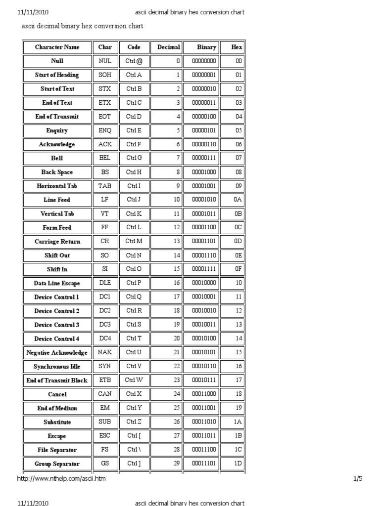 ascii decimal binary hex conversion chart | Orthography | Typographical ...