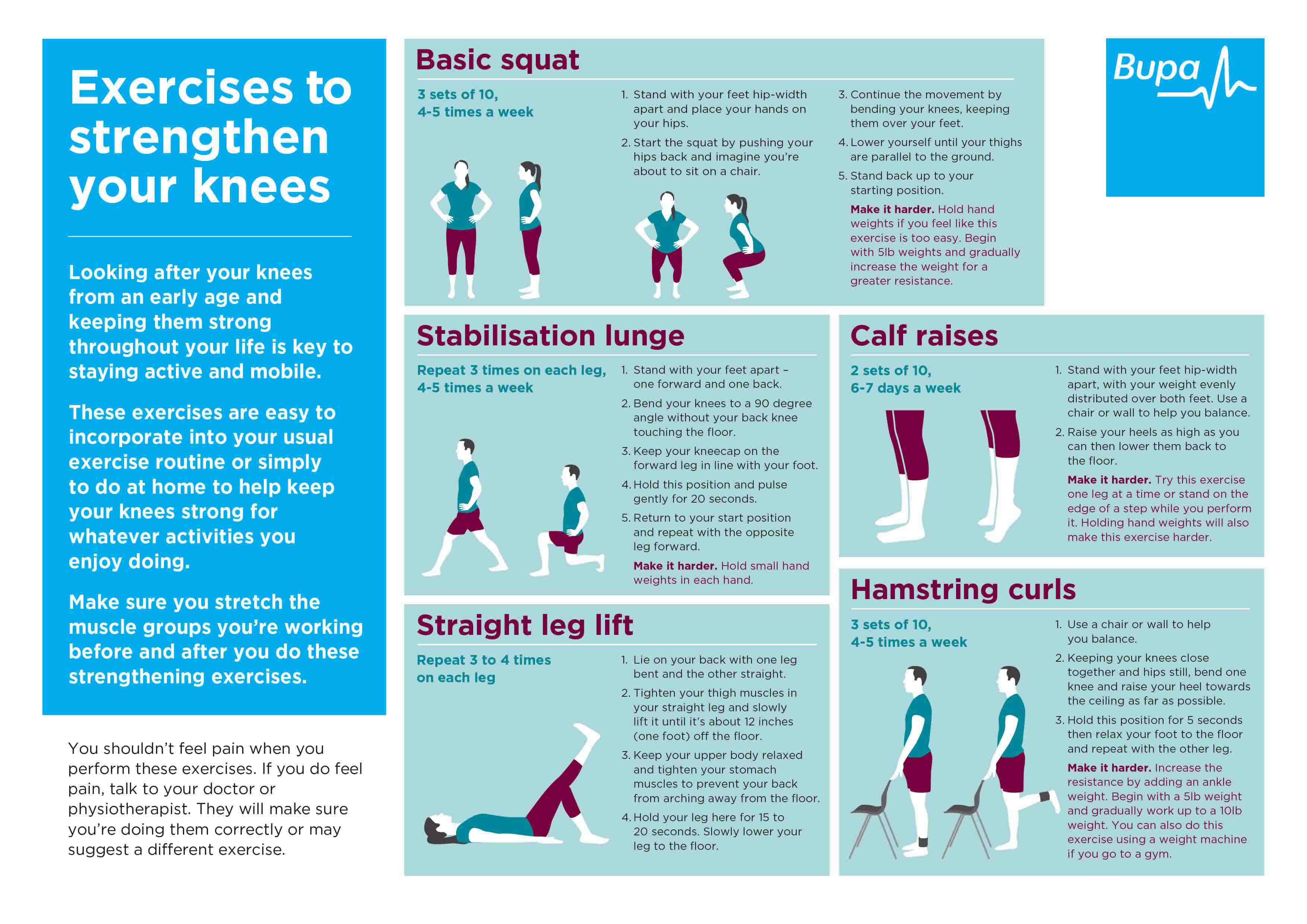 Possible causes; Knee symptoms Possible cause; Pain after overstretching, overusing or twisting, often during exercise: Sprains and strains: Pain between your kneecap and shin, often caused by repetitive running or jumping: Tendonitis: Unstable, gives way when you try to stand, unable to straighten, may hear a popping.